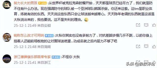 媒体人付政浩点评说道:“大秋很实诚,但我初听一下总觉得他前后矛盾,前面说失去了以往的拼劲,后面又说其实我们都拼了,那到底是有没有拼劲呢?输球就怪精神风貌不端正、拼劲不足,这倒是符合郭指导执教球队的一贯风格。”
